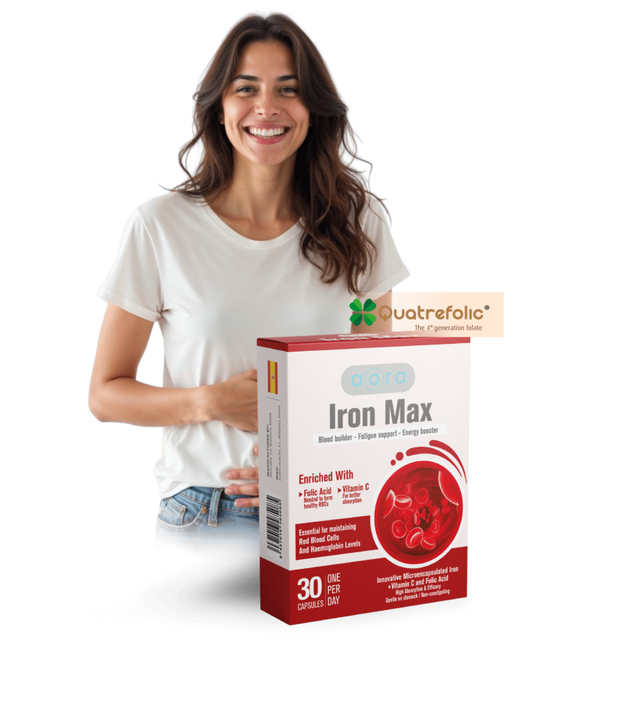 Iron Max with Quatrefolic contains a formulation supplemented with microencapsulated iron, providing the daily intake of iron with increased bioavailability, while being gentle on the stomach and minimizing side effects.